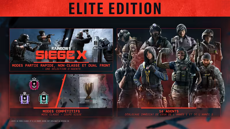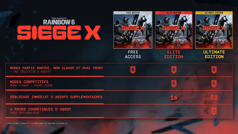 CERTAINES FONCTIONNALITES, COMME LES MODES CLASSÉ, LA SIEGE CUP, DES AGENTS SUPPLEMENTAIRES, ET CERTAINS ELEMENTS COSMETIQUES SONT PAYANTS.